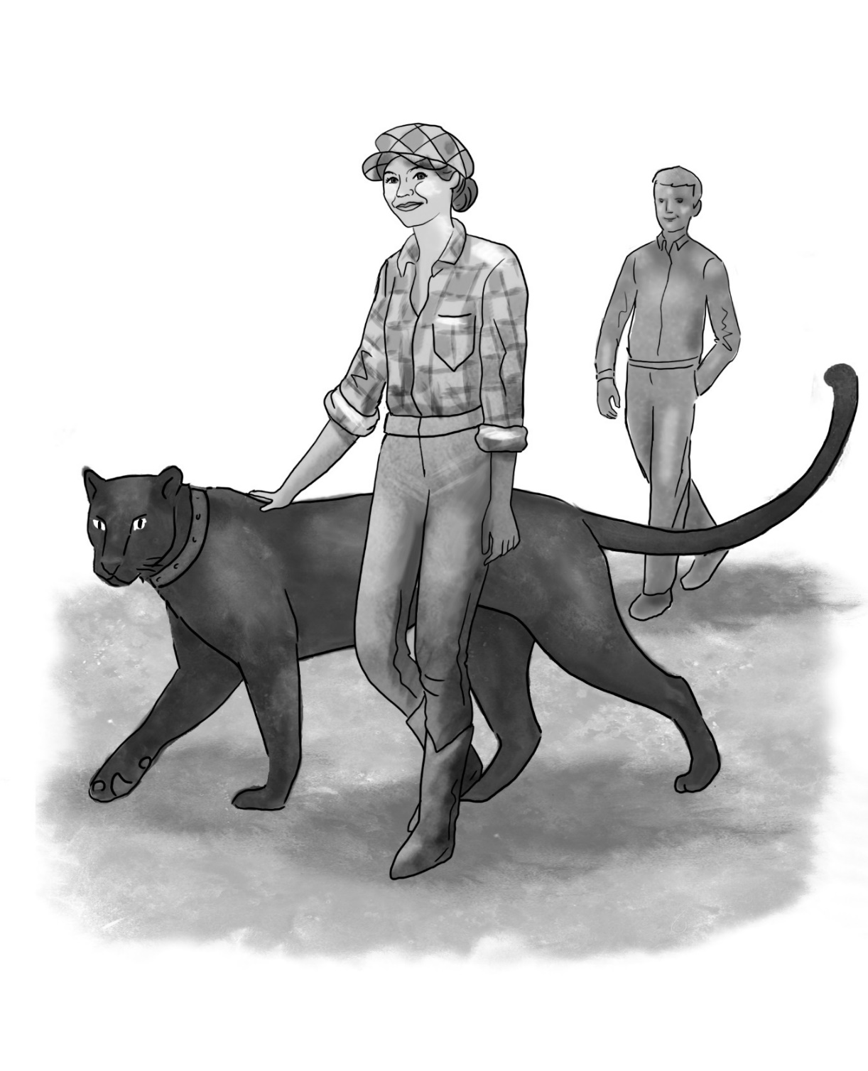 Клеменс приподнялся и стал осматривать поляну. Что бы это могло значить? Вдруг у самого леса увидел девушку. Пантера находилась рядом с ней. Девушка надевала на питомицу ошейник.