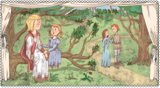 Фрейлина Катрин нарядилась фрейлиной Эмили, фрейлина Эмили – фрейлиной Катрин, Агнесска – крапивкой, а Маргрете – ландышем. Глядя на них, малышка Хильдочка, наш милый ангелочек, запела: