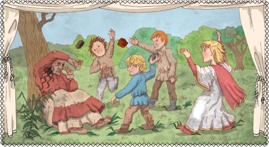 Какая же сказка без колдуньи? Случилось это в начале лета 1315 года. В тот день принцесса Альбертина отправилась на конную прогулку вместе со стражником Йоханом. Выехав из Вальдвегского леса у самого Киля, принцесса Альбертина увидела, как злые мальчишки швыряли камнями в лежащую на земле женщину. В ней принцесса Альбертина узнала старую цыганку, чьё имя никто в вольном городе Киле не называл. Цыганка была страшной, горожане её не любили и старались избегать, так как считали колдуньей. И сама принцесса Альбертина с фрейлинами, когда они вместе убегали из королевского замка в Вальдвегский лес, старались обходить стороной дом цыганки.