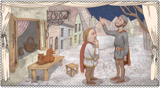 Наступила глубокая ночь. К тому времени в трактире у Ральфа не осталось ни одного посетителя. Только трактирщик не спешил закрывать своё заведение. Он ждал ещё одного гостя. А кто мог к нему прийти? Министр Олдрик! Когда гость сел за стол, трактирщик Ральф подал ему добрый кусок медвежатины и большую кружку пунша.
