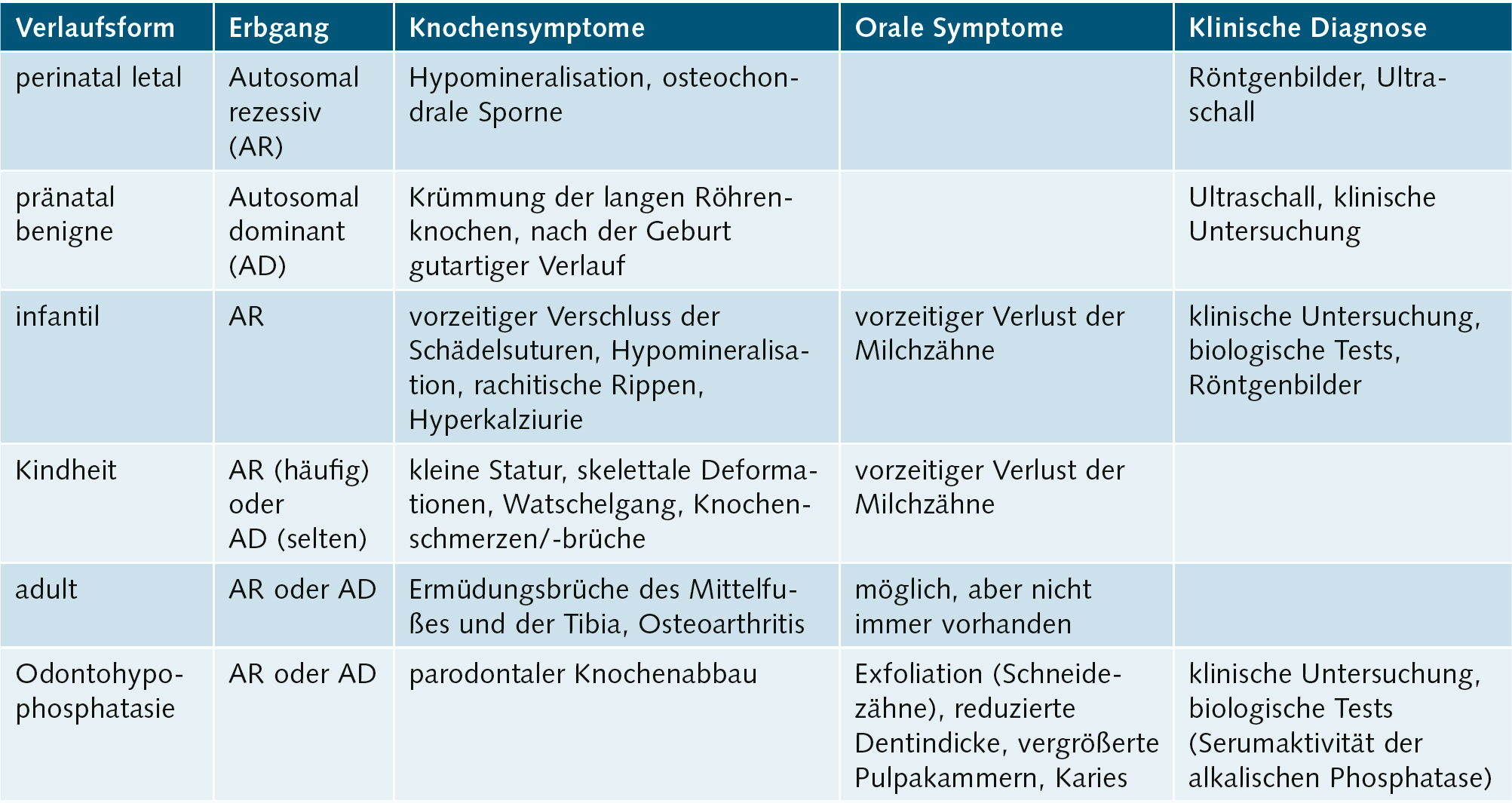Tab. 1 Klinische Verlaufsformen der Hypophosphatasie12.