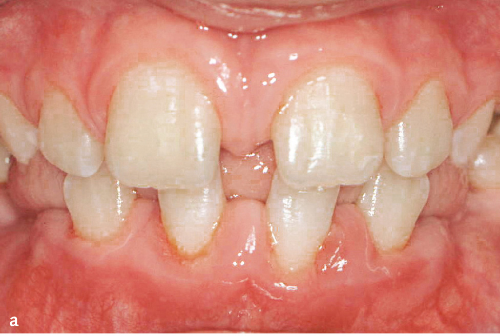 Das Papillon-Lefèvre-Syndrom (PLS; Keratosis palmoplantaris – Periodontopathie; ORPHA678/ICD-10: Q82.8) beschreibt seltene, autosomal-rezessiv erbliche Mutationen des Kathepsin-C-Gens, die zur Inaktivität dieser Cysteinprotease führen. Kathepsin C aktiviert die Serinproteasen (Elastase, Kathepsin G, Protease 3, Neutrophilen-Serinprotease 4) der neutrophilen Granulozyten. Damit ist die erste Linie der parodontalen Infektabwehr beeinträchtigt. Die charakteristischen Symptome sind palmoplantare Hyperkeratosen mit einer bereits im Milchgebiss einsetzenden und sehr rasch verlaufenden Parodontitis (Abb. 1a bis d). Allerdings sind auch atypische Verläufe bekannt, bei denen entweder nur Hautsymptome oder nur die im Milchgebiss einsetzende und rasch verlaufende Parodontitis auftreten6. Die Häufigkeit beträgt 1–4:1.000.000. Untersuchungen der neutrophilen Granulozyten haben in manchen Fällen gestörte Zellfunktionen wie eine verminderte Motilität, Chemotaxis und Phagozytose sowie eine verminderte Produktion von Sauerstoffradikalen gezeigt, die sich in manchen Fällen nach der therapeutischen Intervention normalisierten. In der subgingivalen Plaque werden zumeist vermehrt anaerobe gramnegative Keime und vor allem Aggregatibacter actinomycetemcomitans nachgewiesen.