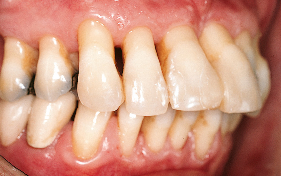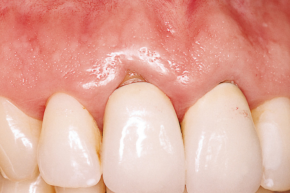 Bei parodontal normalen Verhältnissen liegt der Gingivarand etwa 0,5 bis 1 mm koronal der Schmelz-Zement-Grenze. Der Zahnhalteapparat bedeckt die Zahnwurzeln vollständig (Abb. 1). Wenn es infolge von Parodontitis zu erheblichen Attachmentverlusten und Knochenabbau gekommen ist, zieht sich zumeist auch die Gingiva zurück, und die Zahnhälse werden freigelegt. Es entstehen Rezessionen. Nach Parodontitistherapie und daraus resultierendem Abschwellen des Gewebes tritt dieser Effekt häufig noch deutlicher zutage (Abb. 2).