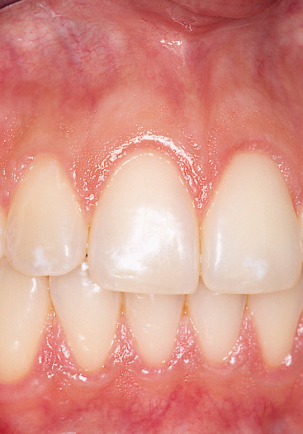 Abb. 5 Interdental der Zähne 11 und 21 marginal einstrahlendes Oberlippenbändchen.