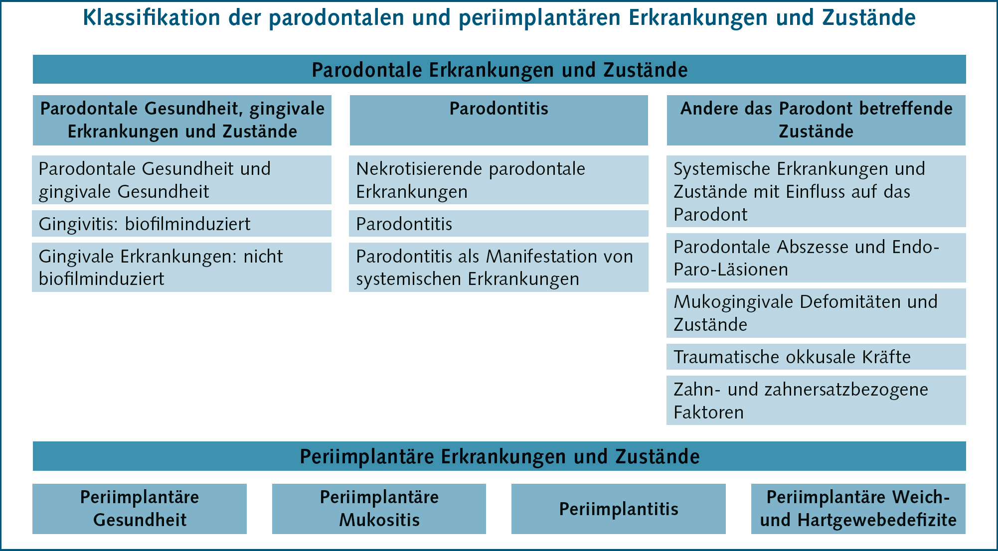 Abb. 2 Klassifikation der parodontalen und periimplantären Erkrankungen und Zustände1,2.