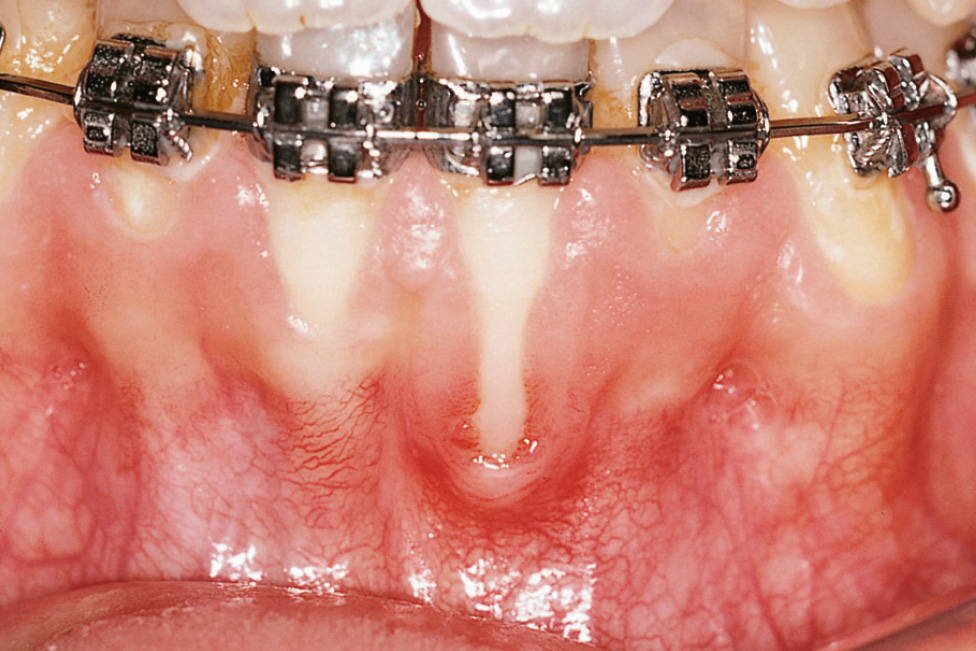 In zahlreichen Untersuchungen konnte gezeigt werden, dass unabhängig von der koronoapikalen (Höhe) oder vestibulooralen (Dicke) Ausdehnung der befestigten Gingiva körperliche Zahnbewegungen durchgeführt werden konnten, ohne dass es zu Rezessionen kam, wenn eine effektive Plaquekontrolle und dadurch Entzündungsfreiheit gewährleistet war. Bei bakterieller Exposition und Vorliegen von Entzündungszeichen besteht allerdings ein erhöhtes Risiko für gingivale Rezessionen infolge kieferorthopädischer Labialbewegungen, insbesondere bei Vorliegen einer dünnen Gingiva1.