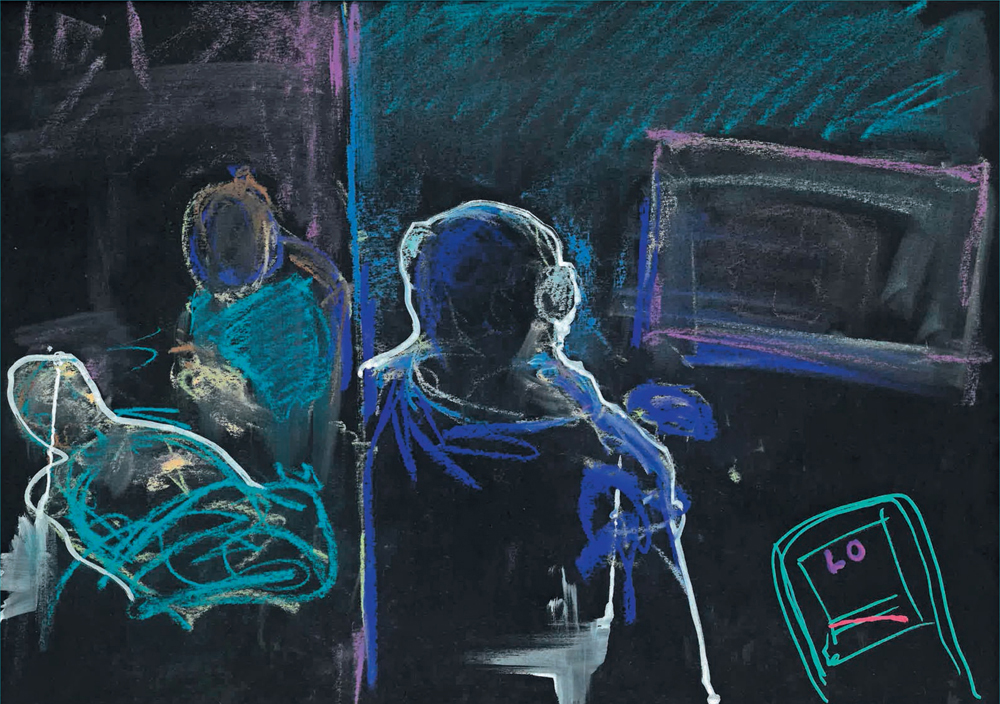 Er hat sich als Nicht-Diabetiker, der vorher nicht viel über Typ 1 wusste, mit den Geschichten beschäftigt und sagt: „Für mich war es spannend, wie anders das Leben für Menschen mit Typ-1-Diabetes ist. Sie müssen ständig ihren Blutzucker im Blick behalten und den Tag über zahllose Entscheidungen treffen. Das kann ganz alltägliche Dinge wie einen Kinobesuch oder die Sicherheitskontrolle am Flughafen zu einer Herausforderung machen. Mit Diabetes zu leben und sich irgendwie zu arrangieren ist eine Frage des Überlebens, nicht etwas, was man mal machen kann und mal nicht. Es gibt keine Pausen. Unterschiedliche Persönlichkeiten reagieren sehr unterschiedlich darauf. Ich habe versucht, Farben und stilistische Mittel zu nutzen, um einerseits darzustellen, wie die 16 Teilnehmer:innen mit dem Leben mit Typ-1-Diabetes auch emotional umgehen, und andererseits einige der Geschichten zu illustrieren, die sie erzählt haben.“ Für diese Porträtserie hat er farbiges Papier als Hintergrund benutzt und die Zeichnungen selbst mit verschiedenen Arten von Farben gemacht, vor allem Pastell, Kreide und Posca Marker. So konnte er künstlerisch die Gefühle aufgreifen und verarbeiten, die er in den Tonaufnahmen der Gespräche und Interviews wahrgenommen hat.
