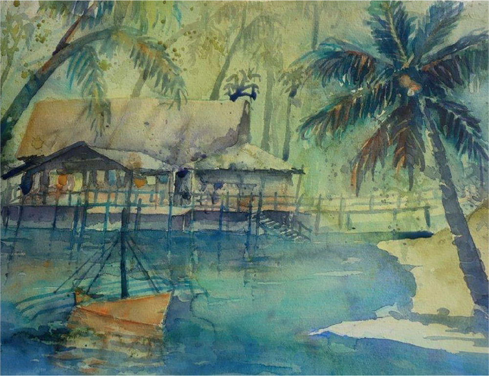 Leise plätschern die Wellen der nahen Lagune, das ab und zu nur vom papierenen Rascheln der dichten Palmen übertönt wird, wenn der milde Passatwind vom Meer her ihre wiegenden Kronen streichelt.