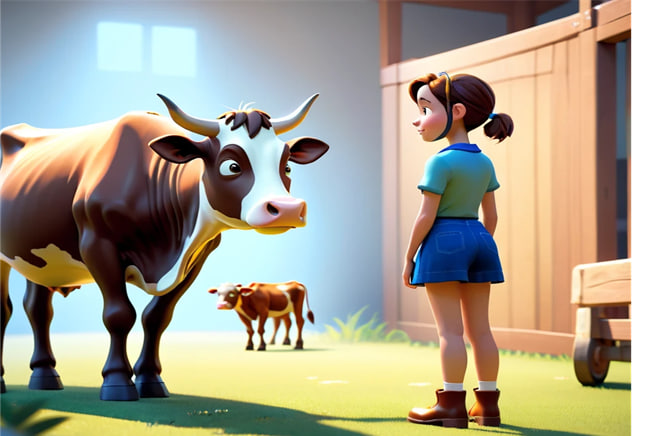 Прибыв в деревню, Лиза и Изумруд сразу же отправились на прогулку к соседнему хозяйству. Вскоре они встретили корову по имени Милка. Она паслась на лугу и, увидев Лизу и Изумруда, подняла голову: «Здравствуйте, ребята! Я – Милка. Как я рада вас видеть!»
