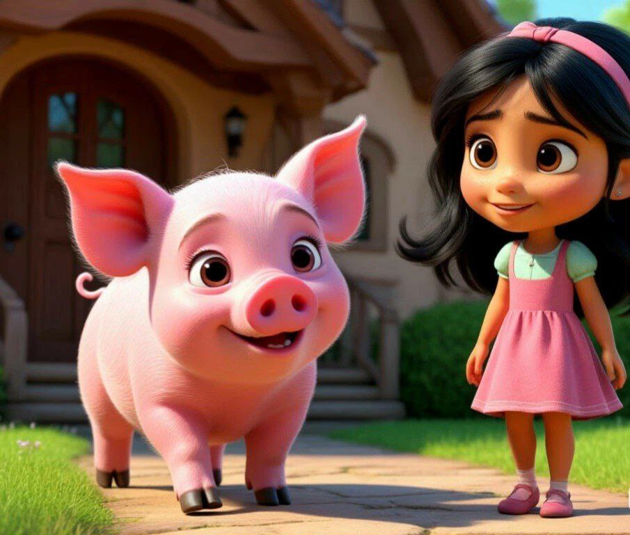 «Привет! Это мой лучший друг!»-сказала Бэлла, указывая на Розочку, которая весело хрюкала.