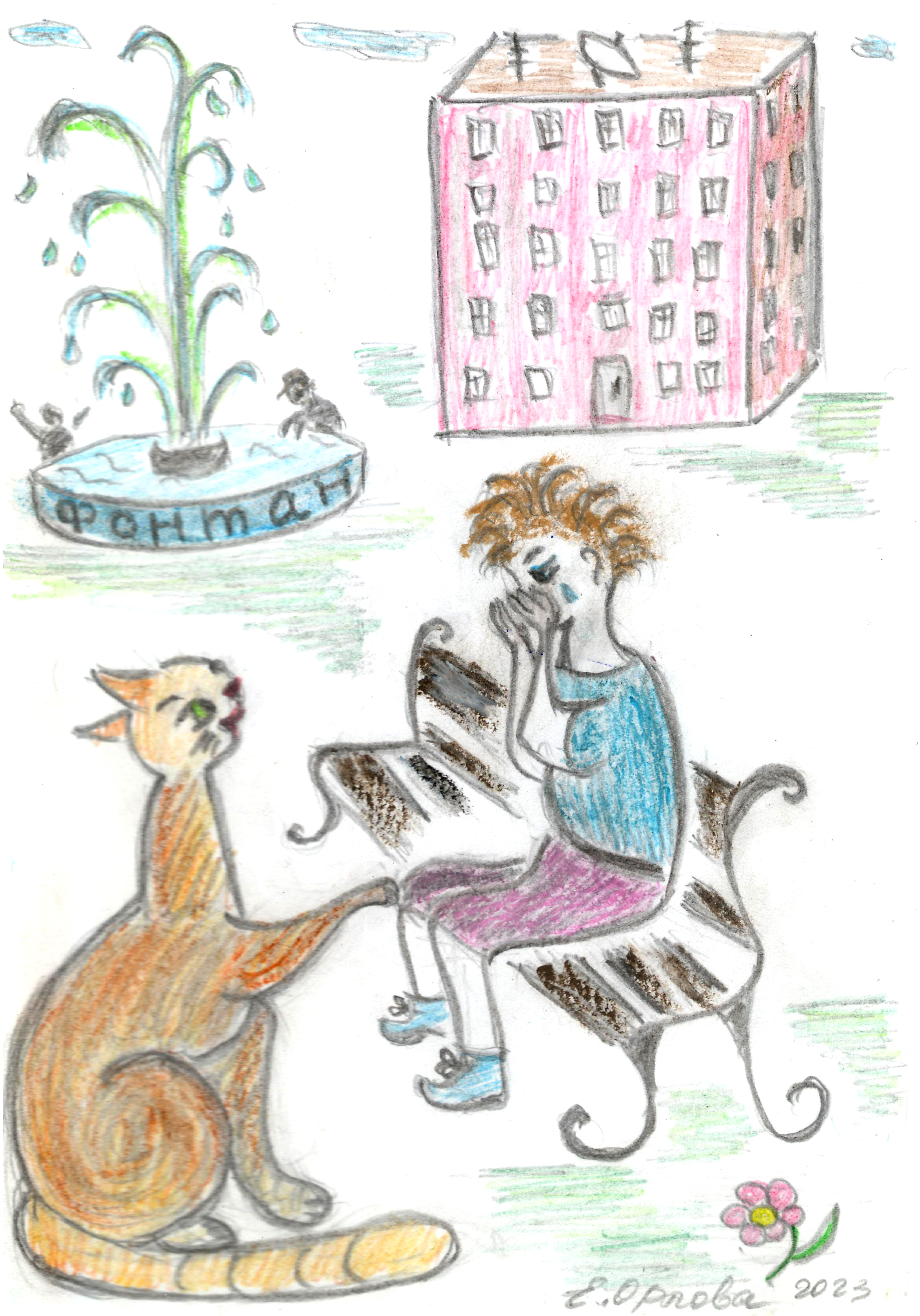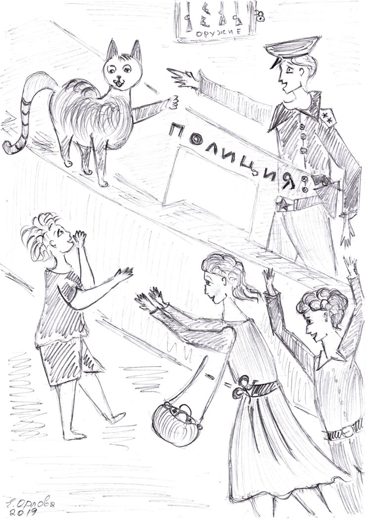– Я жил в Городе со своей семьёй – мамой, папой, братьями, сёстрами, бабушками и дедушками. У нас был свой кошачий домик во дворе высокого дома, в котором жили люди. Люди нас кормили, а дети играли с нами. Дети-то и назвали меня Рыжий Мяукс – я же рыжий и мяукал, как все коты. Как-то вечером я вышел погулять, вижу – мальчик сидит маленький на лавочке и плачет. Оказывается, он потерялся – то есть не знал, где искать своих родителей. Я ему говорю: «Пойдём к полицейским, если кто-то что-то потерял, то сразу к полицейским идёт, и они это ищут».