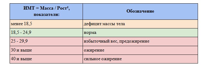 Наш мужчина из примера имеет ИМТ = 85 / 185² = 85 / 34 225 = 24,8 (норма).
