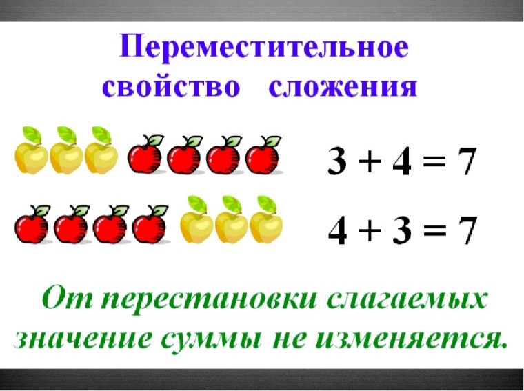 Взаимосвязь сложения целых неотрицательных чисел и объединения множеств позволяет истолковать с теоретико-множественных позиций и свойства сложения: