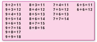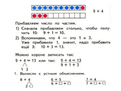 1. Сложение однозначных чисел с переходом через десяток: