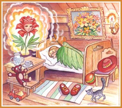 Услышав эти слова, Светлячок грустно вздохнул и печальный побрёл в свой уголок. Он пришёл домой, укрылся и уснул, продолжая мечтать о прекрасной Розочке.