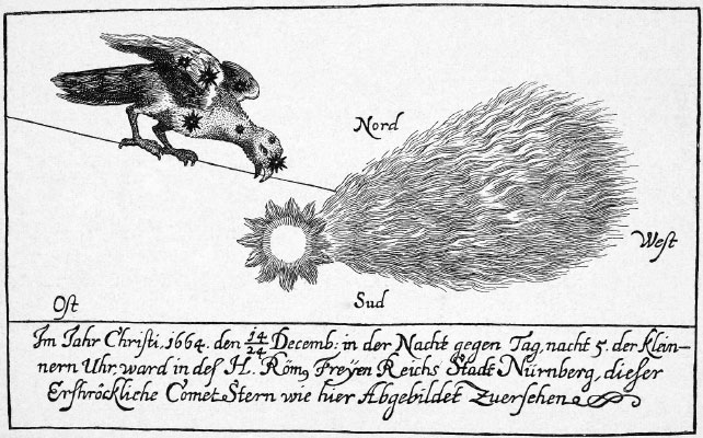 На протяжении десяти лет, с 1609 по 1619 год, преемник великого Тихо Браге – Иоганн Кеплер – публикует эмпирически выведенные им на основе наблюдений Тихо законы, но на гелиоцентрическую систему мира пока наложено табу. В 1664 году была открыта первая Великая комета эпохи Просвещения – C/1664 W1, или Великая комета 1665 года. Только представьте себе список ученых, которые наблюдали ее: Исаак Ньютон, Эдмунд Галлей, Роберт Гук, Ян Гевелий, Джованни Кассини. Ее яркость и внешний вид будоражат всех – от простого горожанина до «короля-солнца»[41]. Кстати, именно эта комета побудила будущего отца классической механики, который наблюдал ее будучи студентом Кембриджа, увлечься астрономией. Конечно, и эта «хвостатая» была уличена в появлении Великой эпидемии чумы в Лондоне и, чтобы два раза не ходить, – еще и в Великом пожаре следующего года. Король Португалии Афонсу VI, посчитавший, что комета грозит лично ему, даже пытался стрелять в нее из пистолета. Интерес к кометам был, и был он огромным. Дошло до того, что король Франции Людовик XIV созывает в Париже первое в истории собрание ученых, посвященное кометам, чтобы те наконец-то объяснили, что же это за объекты. До понимания их физической природы было еще далеко, но астрономы уже склонялись к тому, что, скорее всего, это тела, пересекающие Солнечную систему по незамкнутым параболическим траекториям.