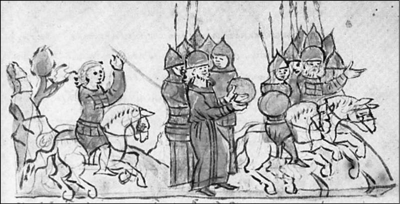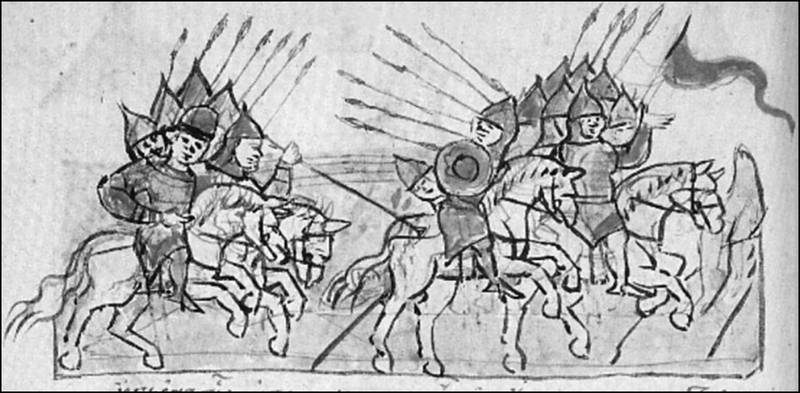 Битва на Нежатиной Ниве. Смерть Бориса Вячеславовича. Миниатюра Радзивилловской летописи.
