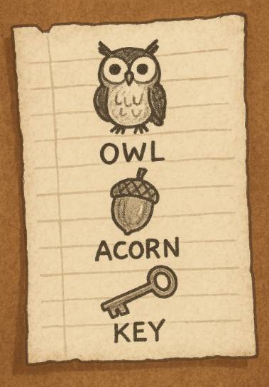 Sofi rolled her eyes. “Luka, this is a code. See? Owl… Acorn… Key. The first letters.”
