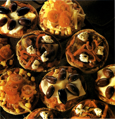 Light rolls or baps, or pieces of French stick or ciabatta bread, split in half, also make good bases for these toppings.
