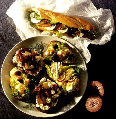 (top) Pan Bagnat and (bottom) Open Sandwiches