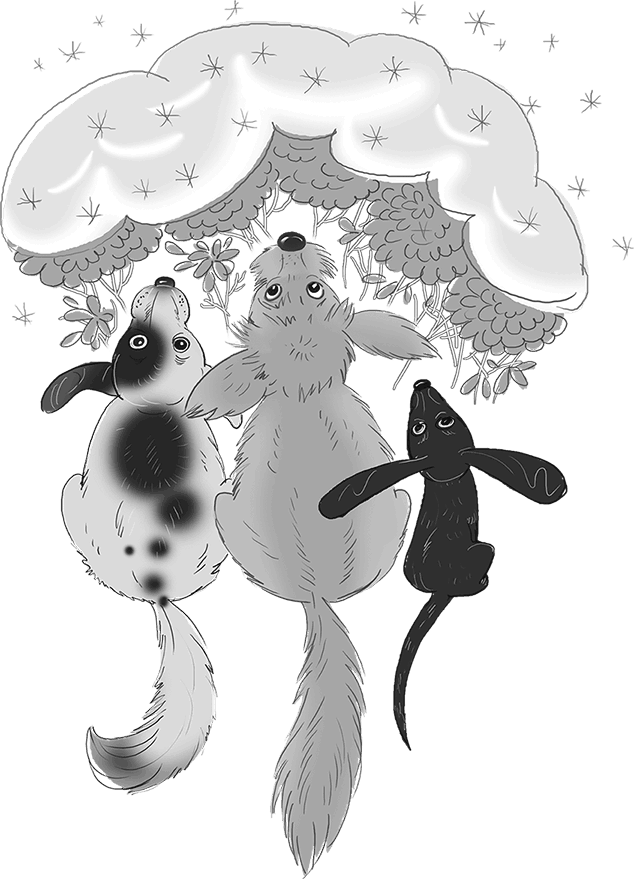 Из школы Катя вернулась сразу после Саши и Алены, часов около двух. Она стояла у окна. За окном крупными хлопьями падал снег и оседал на вечнозеленом кустарнике и на такой же зеленой траве. Перед кустарником сидели Табуретка, Мальчик и Малыш и, задрав головы, с недоумением смотрели на садившиеся им на носы снежинки. Табуретка испуганно подвывала. Малыш рычал. Мальчик демонстрировал философское спокойствие.