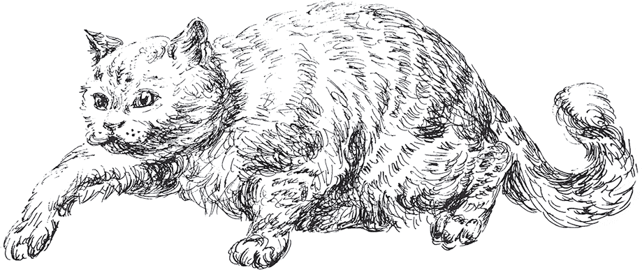 Петя прилип к стеклу и увидел упитанного, непрерывно вздыхающего человека, который на корточках сидел рядом с кошкой и магнитной кисточкой для нанесения порошка осторожно касался ее носа, точно замыкал и размыкал электрическую цепь. Когда он касался носа, хвост кошки приходил в движение. Когда убирал кисточку – кошачий хвост утихомиривался. Всё же кошка не уходила, из чего следовало, что приручение идет полным ходом.