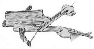 One of the men – swarthy, with a healthy bald spot similar to the rind of a watermelon – having jumped into the jeep, took aim and looked uninterruptedly at the bright red dot. The tip of his tongue, stuck out, with bluish veins on the underside, slid along his lips. His partner – with a crew cut and a complex spider tattoo from the wrists up to the elbows – set in motion the pneumatic windlass and put into the trench an arrow with a three-edged tip. According to its shape, this was precisely an arrow and not a shorter and more massive bolt.