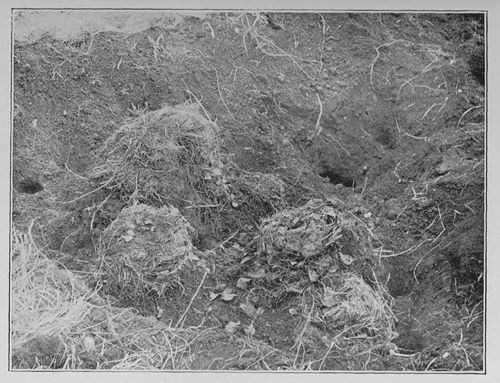 FOUR MOLES' NESTS TOGETHER. THE BIG HILLOCK OF EARTH ABOVE THEM HAS ALL BEEN TAKEN AWAY SO THAT THEY COULD BE PHOTOGRAPHED