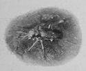 But so it is, for both of them, the Stag-beetle on land and the Great Water Beetle in the ditch, eat scarcely anything at all, and, when they do eat, are quite content to suck the juices out of plants. One reason for these big beetles eating so little is, I think, the very long time which they have for feeding while they are caterpillars—beetle caterpillars, by the way, are always called "grubs" or "larvæ," and beetle chrysalises are called "pupæ." The grubs of the Stag-beetle live on decaying wood (you may sometimes find them at the bottom of an old gate post which has decayed under the ground), and take three or four years to become "full-fed." The grub of the Great Water Beetle spends all his time (three or four years, too, I expect) in the water, and I think he feeds on decaying plants, but I am not sure of this. Some people say that the Stag-beetle uses his great antlers to crush twigs and leaves so as to get the juice. This may be so, but I have never seen him do it.