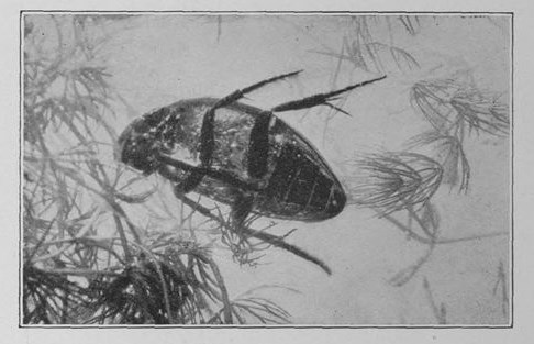 The two largest beetles in this country are the Stag-beetle and the Great Black Water Beetle. I am not sure which should really be called the larger of the two, for it seems hardly fair to count the Stag-beetle's antlers, and if we leave these out, I fancy that the Great Black Water Beetle has the bigger body. It is curious that these two large beetles should be such quiet, easy-going things, and that they should never dream of eating beetles smaller than themselves.