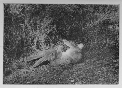 It was indeed sharp change of circumstance. The nursery had been pitch-black, though one short gleam of light had reached it daily. That was when Mother Rabbit snatched her food, and sealed the entrance up for fear of Father. At other times she screened her babies' eyes. So now the sunshine blinded Bunny Rabbit, and pointed grass-stems pricked a skin which nothing harder than breast-fur had touched.