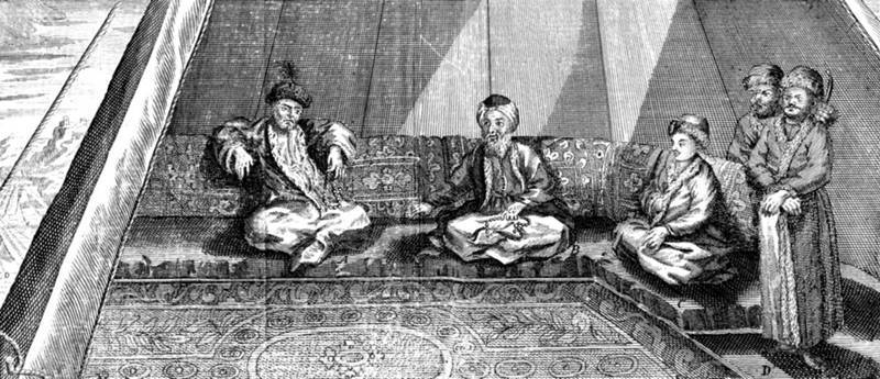 Турецкие военачальники держат совет под Прутом. Гравюра из английского издания 1723 г.