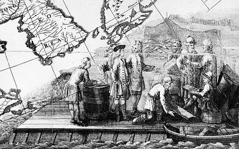 Иноземные купцы в России. Фрагмент карты Российской империи 1734 г.