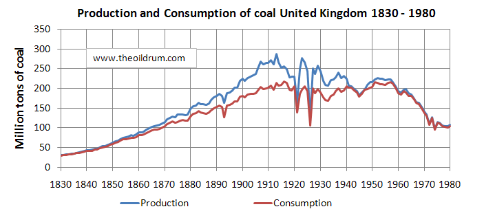 British Coal Production 1830 – 1980; Source of Data: Mitchell (1988)