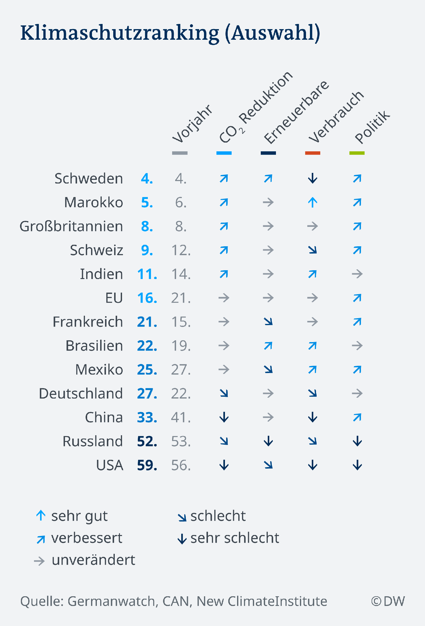 Das in der Klimakonferenz von 2018 in Kattowitz vorgeführte Klimaranking führt Deutschland nur auf Platz 27; Quelle: CAN Europe