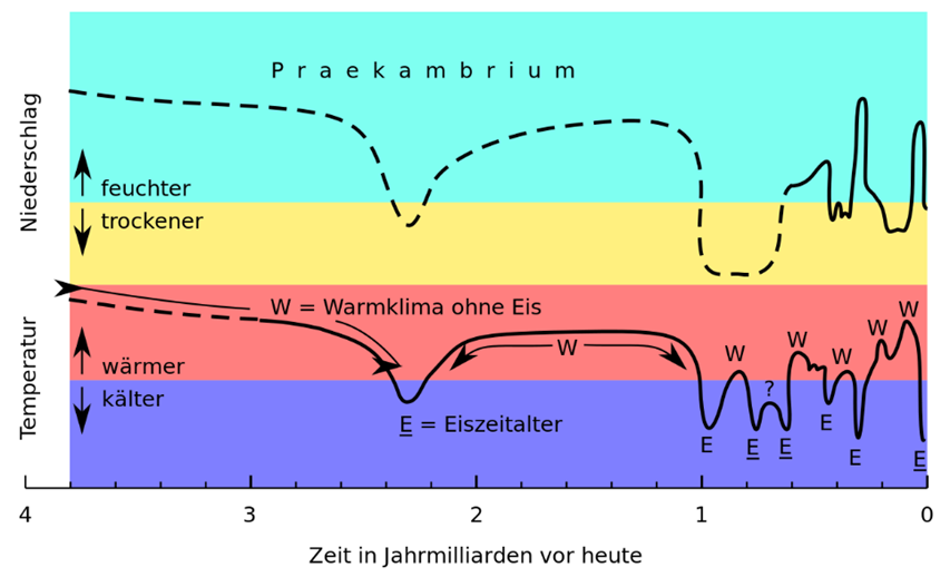 Erdklima in großem zeitlichem Zusammenhang; Quelle: Schönwiese, Christian-Dietrich: Klima im Wandel, Tatsachen, Irrtümer, Risiken; Deutsche-Verlags-Anstalt GmbH, 1992