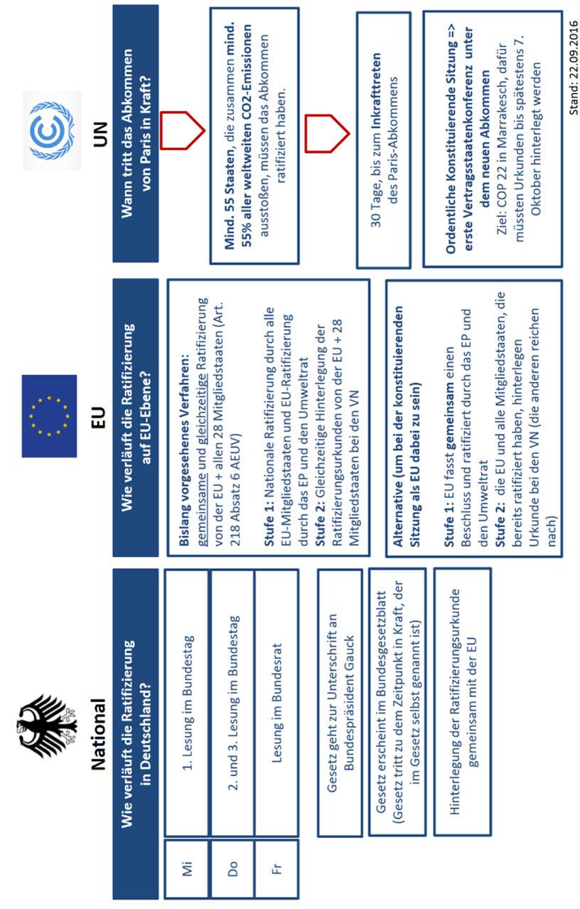 Ratifizierung und Inkrafttreten des Pariser Abkommens; Quelle: BMU 2016