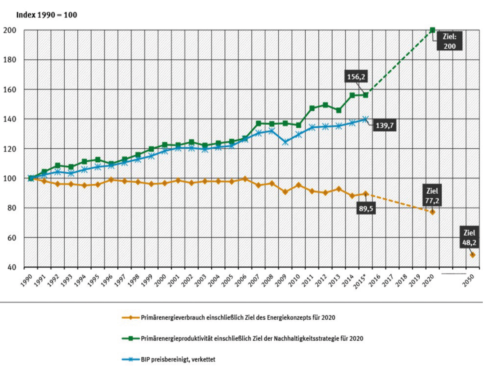 Gemessen werden kann dies über die Energieproduktivität, die das Bruttoinlandsprodukt in ein Verhältnis zum Energieverbrauch setzt.