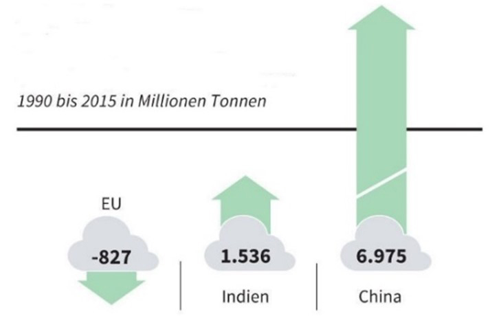 Zur gewachsenen Dominanz Asiens in den CO2-Emissionen; Quelle: IDW 2017, urspr. IAE 2017