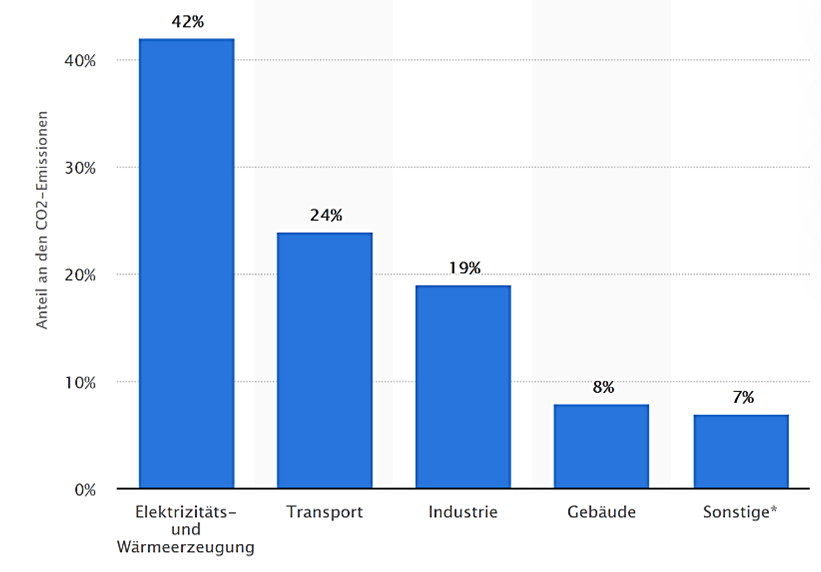 Verteilung der energiebedingten CO2-Emissionen weltweit nach Sektoren im Jahr 2016; Quelle: Statista 2020