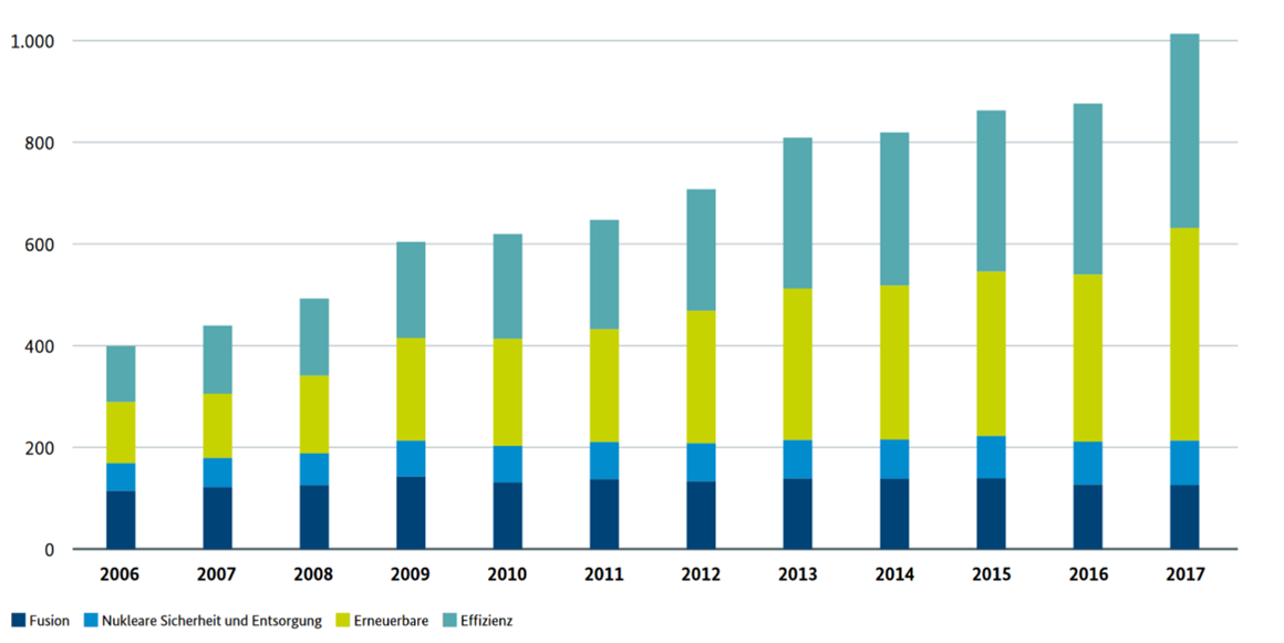 Übersicht der Themen im 6. Energieforschungsprogramm des Bundes, in Mio. €; Quelle: BMWi (Hg.), Bundesbericht Energieforschung 2018.