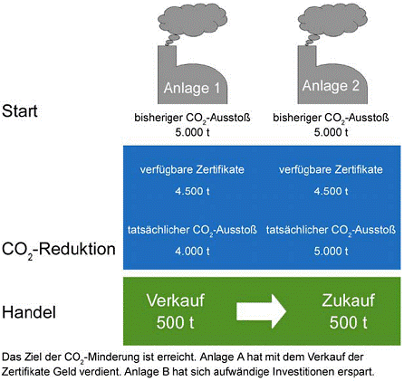 Zum Prinzip des Zertifikatehandels; Quelle: Deutsche Emissionshandelsstelle (DEHSt) im Umweltbundesamt