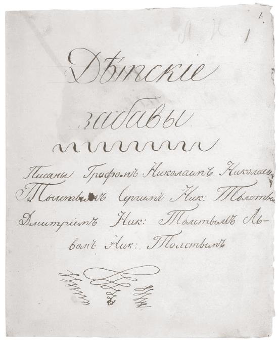 Обложка рукописного журнала братьев Толстых «Детские забавы».