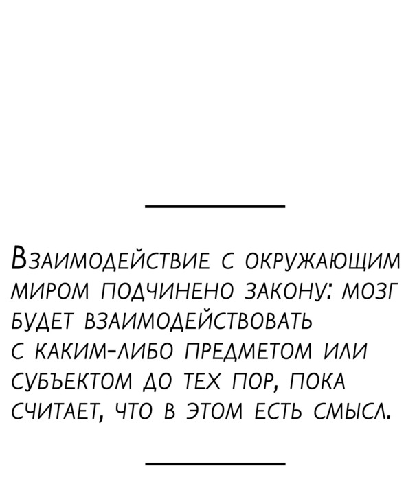 Взаимодействие с окружающим миром подчинено закону: мозг будет взаимодействовать с каким-либо предметом или субъектом до тех пор, пока считает, что в этом есть смысл. А смысл рождается из предыдущего опыта.