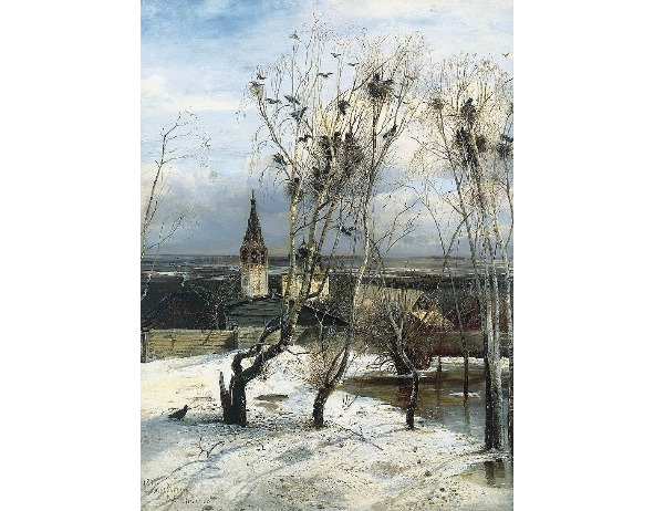 Весны приметы. Хоть и крепки ещё в этом месяце морозы, да уж не то, что были среди зимы. Хоть и глубок снег, да уж не тот, что был – блестящ и бел. Потускнел, посерел, ноздреват стал. А с крыш сосульки растут, а с сосулек капель. Глядишь – уж и лужицы. Солнце всё чаще выглядывает, солнце уж начинает пригревать. И небо уж не мёрзлое, бело-голубоватого зимнего цвета. Небо синеет день ото дня. И облака по нему не сероватые, зимние: они уже слоятся и, того и гляди, поплывут крепкими, сбитыми кучками.