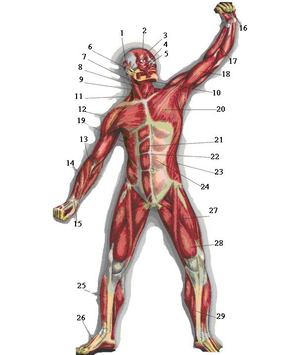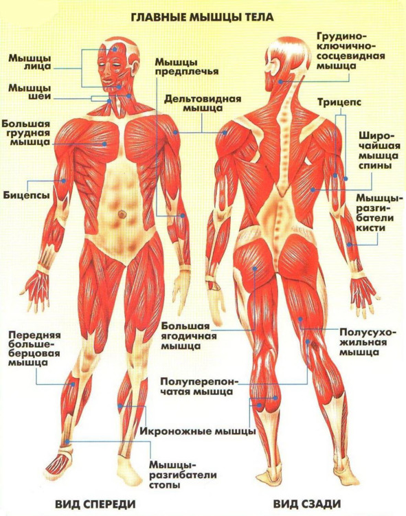 Рис. 6. Главные мышцы тела (вид спереди и вид сзади)