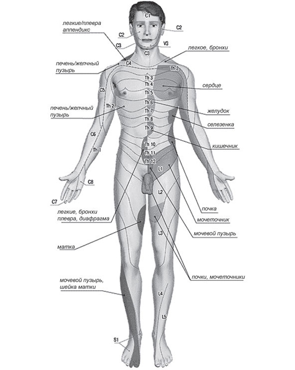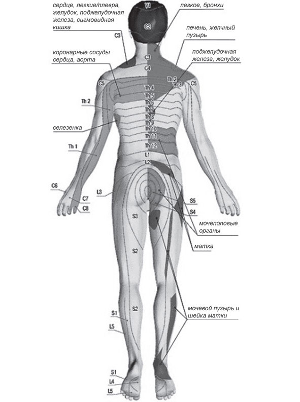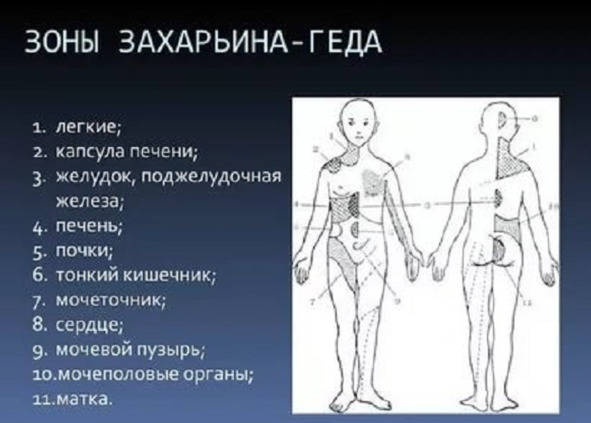 Рис. 5. Рефлекторные зоны Захарьина-Геда отражают их связь с внутренними органами