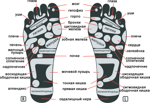 Рис.11 Зоны на стопе проецируемые на внутренние органы