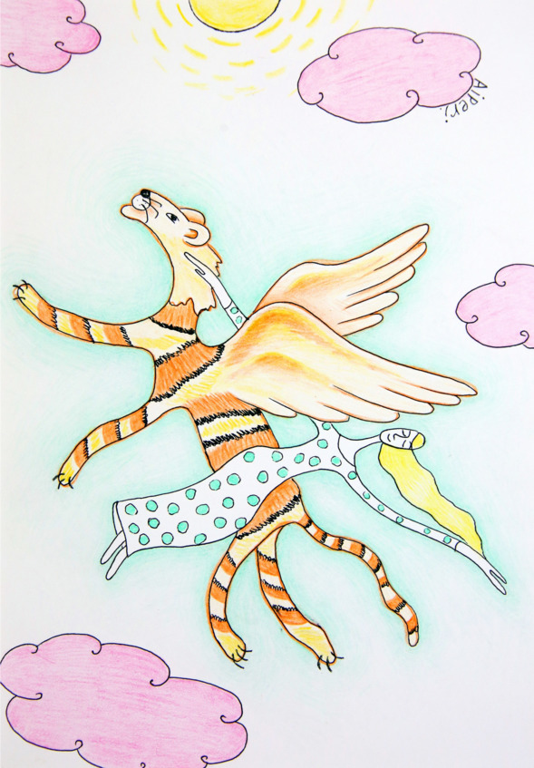 – Play! – Said the tiger and threw her from his back. The girl began to fall somewhere, but the Tiger shouted to her: Spread Your Wings! She felt on her back as the wings grew out. She waved them and flew. Flying was easy. It seemed her the body absolutely didn’t exist. The Tiger gently flew to her: sit, and ride! She sat down, hugged his furry neck and drowned in it. She felt very warm. She asked him: how long will I stay in this world?