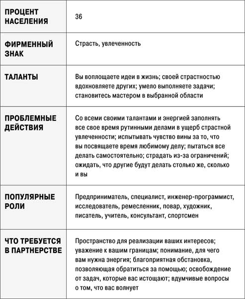 Он дает представление о том, как управлять своей энергией в повседневной жизни, как использовать свои таланты на работе, как найти удовлетворение в отношениях, как осознать свои потребности и с предельной ясностью донести их до любимого человека и как эффективно сотрудничать с другими людьми.